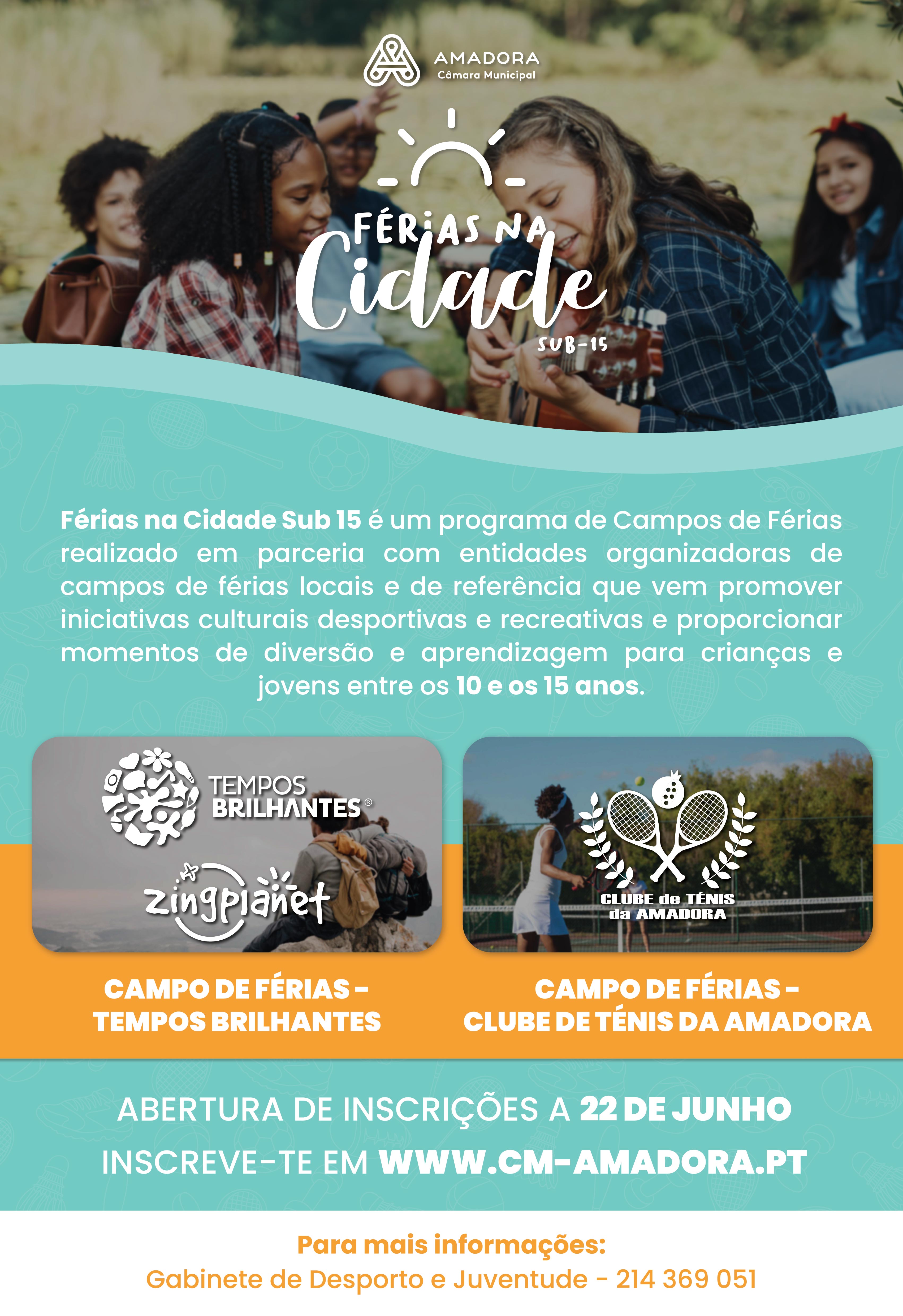 Graphic Identity, Visual Communication and Webdesign for Férias na Cidade sub-15 project, a partnership between Associação Tempos Brilhantes and the City Council of Amadora.